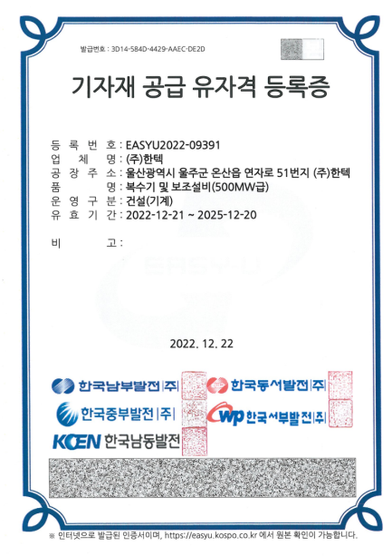 º¹¼ö±â ¹× º¸Á¶¼³ºñ(500MW±Þ)